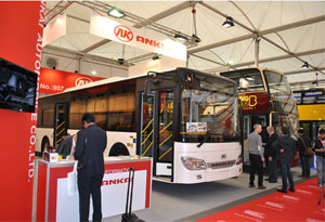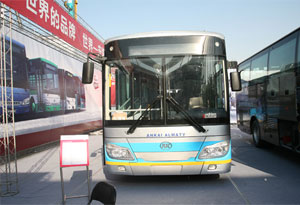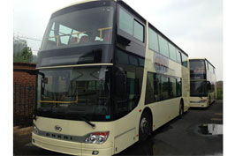 安凱客車(chē):哈爾濱觀光雙層巴士駕到 2013年8月,哈爾濱開(kāi)通了兩條沿江旅游觀光巴士線(xiàn)路,9輛嶄新的安凱雙巴車(chē)已運(yùn)抵哈爾濱市,投入到開(kāi)通的沿江觀光線(xiàn)路中。這批旅游觀光車(chē)車(chē)身長(zhǎng)度為12米,一層設(shè)有駕駛室、樓梯通道及前后車(chē)門(mén),內(nèi)部座椅只有14個(gè)。通過(guò)位于駕駛室后面的樓梯走上二層,座椅共45個(gè),空間寬敞。