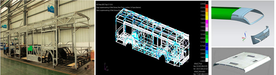 整車采用高強度復合材料、整體成型前后圍、頂蓋、側圍。高強度復合材料耐腐蝕性強,降低整車質量,同時起到很好的隔音降噪效果。