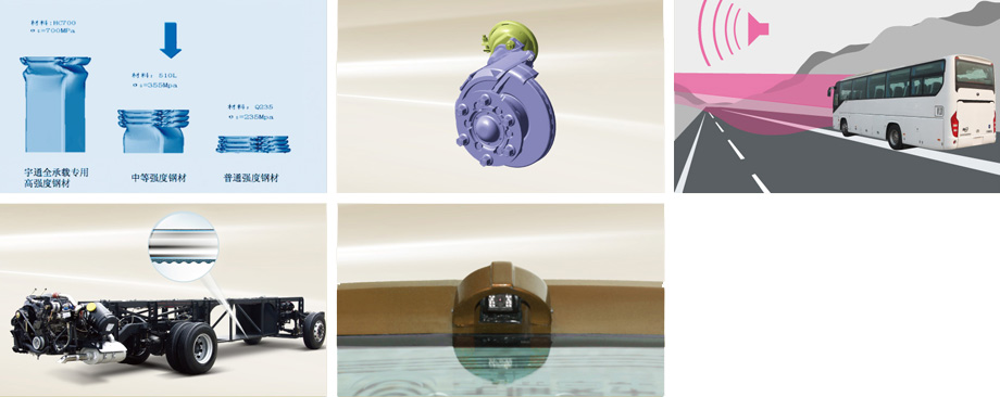 底盤采用施必牢螺母,并經(jīng)過多達(dá)4輪仿真分析和精心調(diào)校,操穩(wěn)性達(dá)到歐洲先進(jìn)客車水平??蛇x裝ESC/ESP、EBS、ACC。