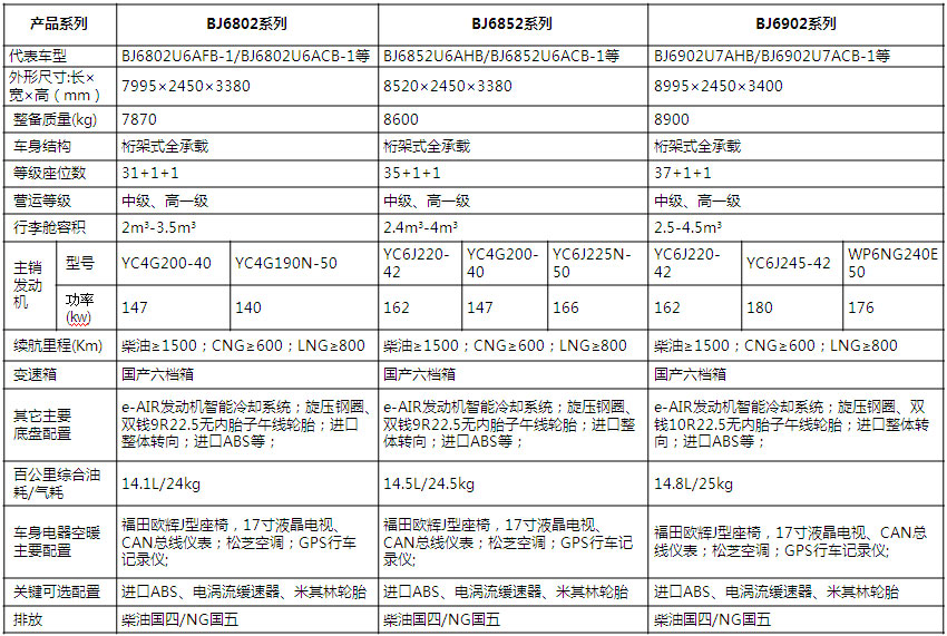 | 代表車型 | BJ6129U8BKB/BJ6129U8BTB-3等 | BJ6129U8BKB-2/BJ6129U8BTB-1等 | BJ6129U8BJB-2/BJ6129U8BJB-3 | |||||||