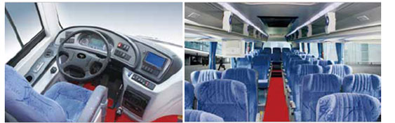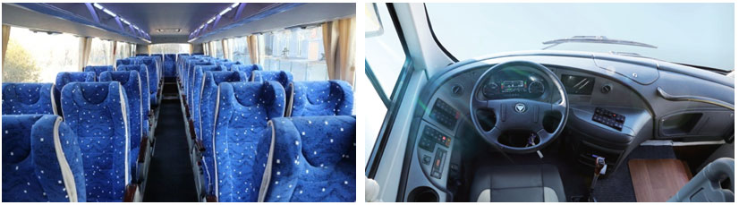 福田歐輝J型座椅,仿格拉默司機(jī)椅;通長LED燈帶;17寸液晶視;CAN總線儀表;松芝空調(diào);30KW獨(dú)立水暖; |