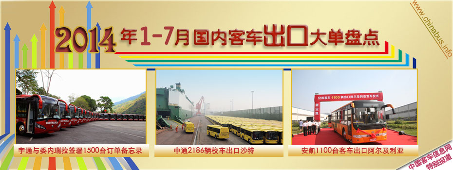 導(dǎo)讀:7月21日,習(xí)主席訪問委內(nèi)瑞拉,見證宇通客車與委內(nèi)瑞拉簽署了包含1500輛宇通客車、配件、工具、維修及智能公交運營管理系統(tǒng)等的備忘錄。7月22日,“安凱客車1100輛出口阿爾及利亞發(fā)車儀式”舉辦。繼而,在7月底的青島港,中通客車完成了2186輛中通校車在山東青島港舉行發(fā)車儀式,該批校車由沙特阿拉伯教育部統(tǒng)一招標訂購。至此,2014年國內(nèi)客車在出口海外領(lǐng)域取得了輝煌的成績。 |