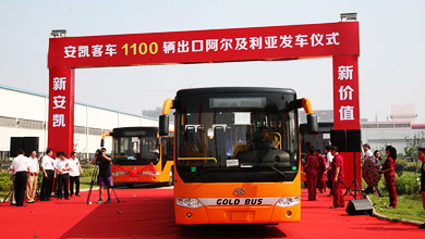 安凱1100輛客車出口阿爾及利亞7月22日,“安凱客車1100輛出口阿爾及利亞發(fā)車儀式”在合肥舉行。6月份,安凱與阿爾及利亞CIMA MOTORS公司簽署了此批客車銷售合同,合同總金額為3600萬(wàn)美元,約合人民幣2.24億元。 【詳細(xì)】