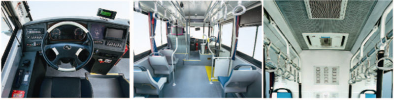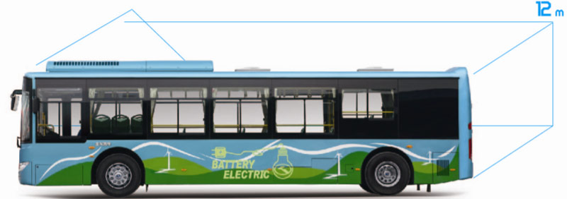 車輛前后懸縮短,軸距加長,中區(qū)座椅1+1布置情況下,實現(xiàn)極限載客人數(shù)可超100人,超越普通12米純電動客車承載量。