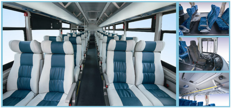 小車身,大容量:在短后懸長軸距的設計思路下,使車內(nèi)空間得到有效提升,整車座椅9+1個,車內(nèi)站立面積4.4平方米,最大載客量45人,在6.4米的小車上達到了8米車的載客量。