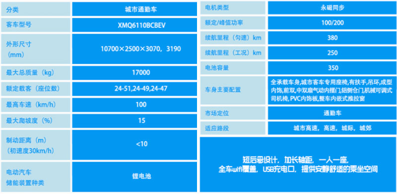 全能私駕XMQ6110BCBEVD定制通勤公交實現(xiàn)一人一座,全車wifi覆蓋,USB充電口,提供安靜舒適的乘坐空間,為城市定制化通勤服務提供最佳的產(chǎn)品選擇。