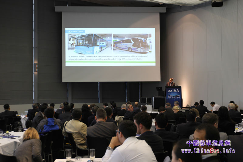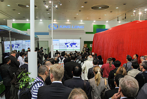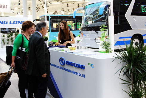 | 2014年德國漢諾威商用車展于2014年9月25日-10月2日在德國漢諾威舉行。IAA車展從1897年舉辦至今,已有100多年的歷史,是全球最古老的專業(yè)展覽會之一,也是目前全球最具影響力的商用車展覽和貿(mào)易交流會,展會將集中展示全球商用車的最新車型產(chǎn)品和技術(shù)發(fā)展趨勢。作為我國客車行業(yè)的領(lǐng)導(dǎo)者,大金龍已經(jīng)連續(xù)參加了四屆,保持著中國客車在歐洲車展上的最高曝光率,吸引眾多國內(nèi)外媒體的眼球。在歷屆IAA展會上,大金龍的重磅新品無一例外給歐洲客戶帶來極大驚喜。而在本次展會上,全新升級版的金龍展車,將再一次代表中國客車站在世界頂級車展上,引領(lǐng)歐洲綠色風(fēng)尚。 |