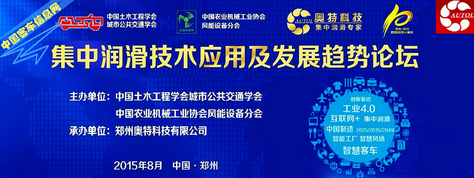 創(chuàng)新驅(qū)動(dòng)工業(yè)4.0、互聯(lián)網(wǎng)+集中潤(rùn)滑、中國(guó)制造2025/2035/2049、智能工廠、智慧客車……這些關(guān)鍵詞出現(xiàn)在8月11日于河南鄭州舉辦的集中潤(rùn)滑技術(shù)應(yīng)用及發(fā)展趨勢(shì)論壇的主題背景板上。本次論壇由中國(guó)土木工程學(xué)會(huì)城市公共交通學(xué)會(huì)、中國(guó)農(nóng)業(yè)機(jī)械工業(yè)協(xié)會(huì)風(fēng)能設(shè)備分會(huì)主辦,鄭州奧特科技公司承辦。鄭州市科學(xué)技術(shù)學(xué)會(huì)副主席馬國(guó)明、中國(guó)土木工程學(xué)會(huì)城市公共交通學(xué)會(huì)秘書長(zhǎng)袁建光、中國(guó)公路學(xué)會(huì)客車分會(huì)秘書長(zhǎng)裴志浩、中國(guó)科學(xué)技術(shù)咨詢服務(wù)中心處長(zhǎng)馮耕等嘉賓出席論壇并致辭 [詳細(xì)]