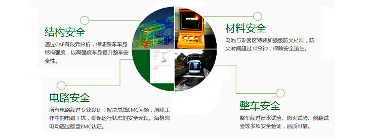 海格綠管家純電動無憂解決方案,關于純電動客車的安全,以電池安全、系統(tǒng)安全、整車安全的立體式周全防護,為客車運營商保駕護航,實現(xiàn)購車無憂。
