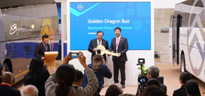 海外市場簡介:2015年1月,金旅歐6客車批量出口以色列交接車儀式在廈門舉行,該合同訂單總數(shù)177輛,總價值達(dá)2700萬美元,分3批交付,此次交付的是第二批81輛,分別為55