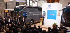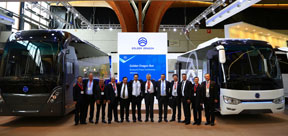 參展車型簡介:金旅參展的3款展車主打豪華旅游客車、新型城郊車等不同類型的產(chǎn)品。其中,全球首發(fā)XML6129全新歐6開拓者車型,搭載WABCO車身穩(wěn)定系統(tǒng)及AEBS系統(tǒng),該套先