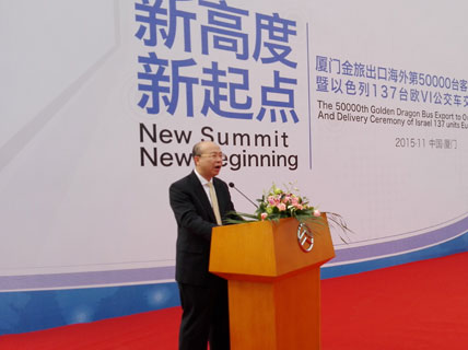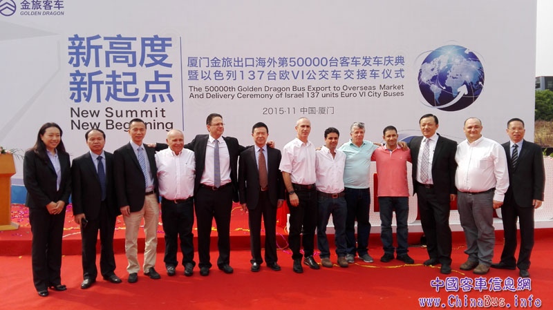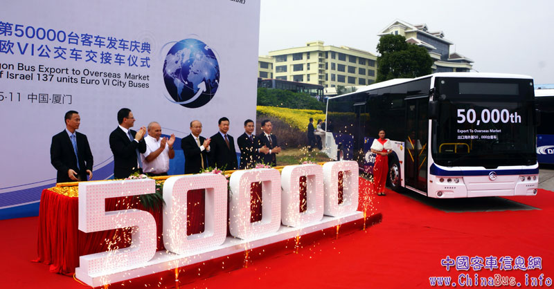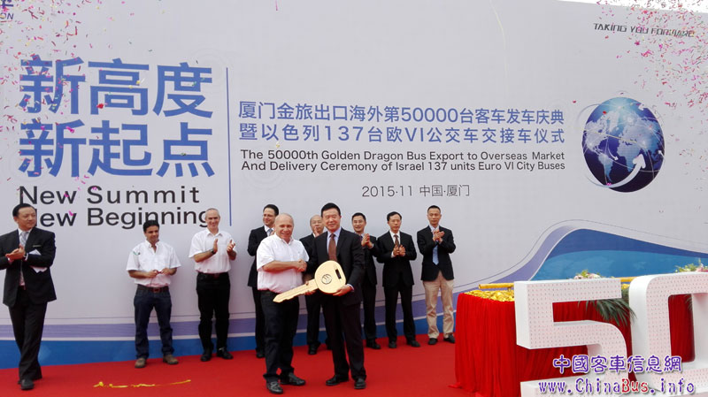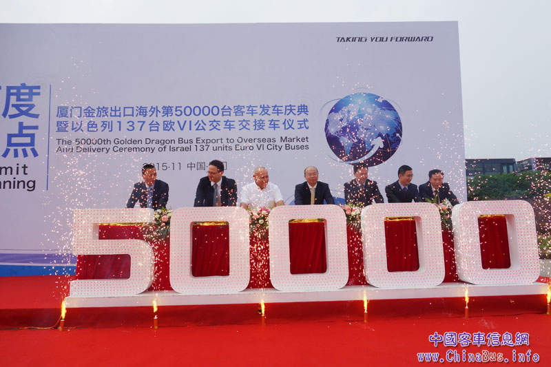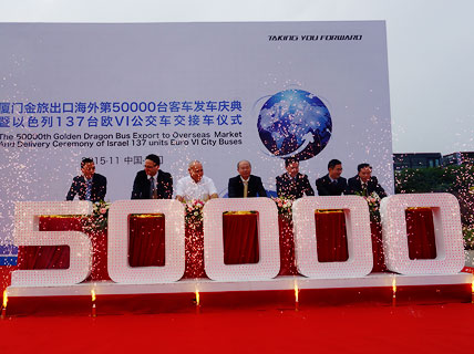 11月30日,廈門金旅第50000輛客車出口海外發(fā)車慶典暨以色列137輛歐VI公交車交接車儀式在廈門金旅海滄基地隆重舉行。這標(biāo)志著廈門金旅成為國內(nèi)大中型客車業(yè)為數(shù)不多海外出口總量突破5萬輛的企業(yè)之一。