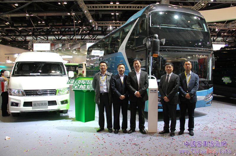 5月11-13日,大金龍攜五款精品客車參加2015道路運輸車輛展,分別是自主ISG混合動力公交XMQ6127、純電動公路客車XMQ6129Y、純電動凱歌、純電動凱特及國車經典五系革新力作——新一代公路客運車XMQ6119FY,其中,公路客運車XMQ6119FY在本屆展會正式發(fā)布,發(fā)布會期間,大金龍還發(fā)布了新能源全能解決方案——易驅新能源管理系統(tǒng),發(fā)布會上金龍汽車集團董事長廉小強一行蒞臨大金龍展臺。