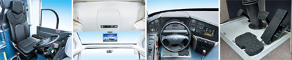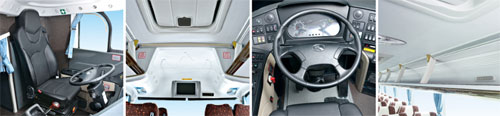 高靠背減震可調式司機座椅,可有效緩解駕駛疲勞;一體式前成型頂,線條流暢,美觀大方;多功能方向盤(可選裝),通過多用途快捷鍵,使司機操作更舒適便捷;專利組合踏板,可在車內(nèi)調節(jié)行程,操作更平順省力,檢修更便捷。