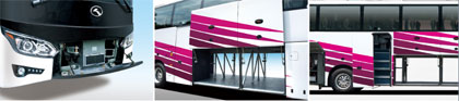 可開啟式前圍設計,方便車輛檢測維修;采用單軸鉸鏈外擺式行李艙門設計,更易開啟,內(nèi)部整體貫通,使有效空間達到最大化;全鋁遙控外擺中門設計,為車輛打造一流的氣密性與美觀性。