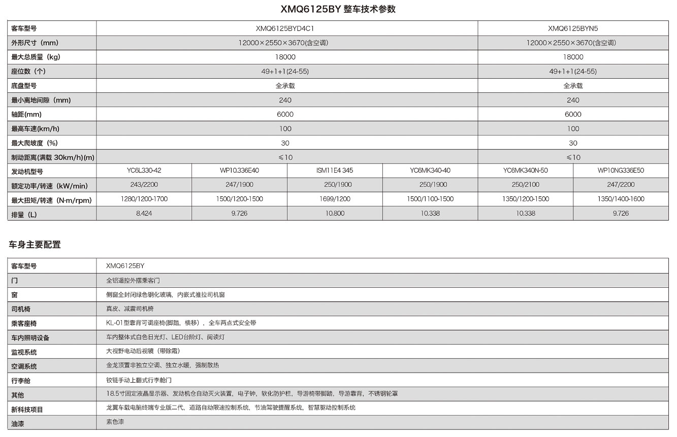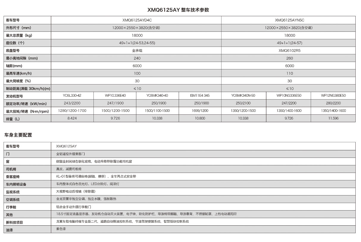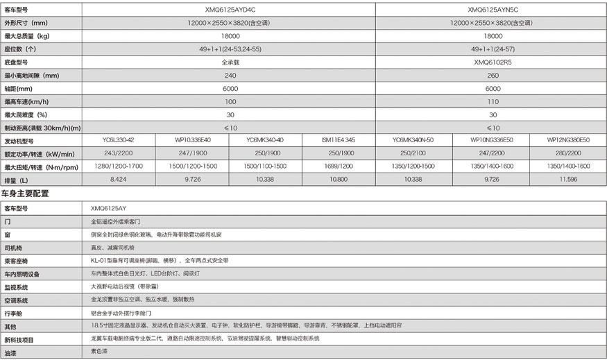—— 大金龍經(jīng)典5系公路客車之XMQ6125AY
