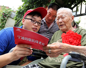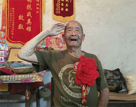 高齡,雖然行動有些遲緩,但講起當(dāng)年的抗戰(zhàn)故事,老人興致勃勃