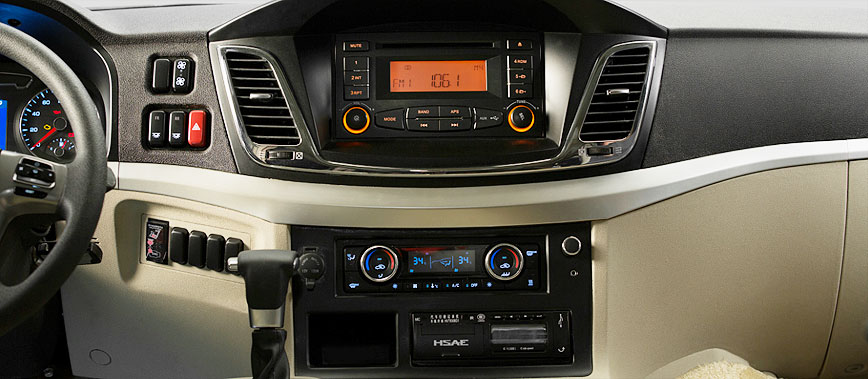 宇通T7采用與乘用車相似的中控臺(tái)設(shè)計(jì),上黑下米的上下分體、分色主流的布局,中間腰線結(jié)合左右側(cè)出風(fēng)口由亞光銀的裝飾亮條貫穿并與門護(hù)板裝飾亮條遙相呼應(yīng)。左右中央風(fēng)口飾條采用電鍍亮銀外觀處理像精靈一樣點(diǎn)綴在儀表臺(tái)中央,儀表臺(tái)總成、發(fā)動(dòng)機(jī)罩總成一體化、流線型的造型設(shè)計(jì),結(jié)合轎車化布置的換擋機(jī)構(gòu)、手剎機(jī)構(gòu)組合增加了整體造型的層次感。