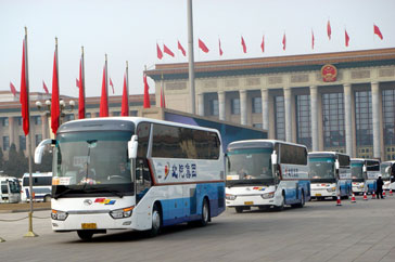前言:2016年3月3日和5日,政協(xié)第十二屆全國(guó)委員會(huì)第四次會(huì)議和第十二屆全國(guó)人民代表大會(huì)第四次會(huì)議(以下簡(jiǎn)稱“全國(guó)兩會(huì)”)在北京人民大會(huì)堂盛大開幕。在人們聚焦各地代表提案的同時(shí),全國(guó)兩會(huì)服務(wù)用車也吸引了人們的廣泛關(guān)注。那么,在今年的兩會(huì)服務(wù)用車中,又有哪些客車光榮上崗了呢?宇通、金龍客車、金旅、海格……這些熟悉的客車企業(yè)幾乎是一個(gè)都不少呢! |