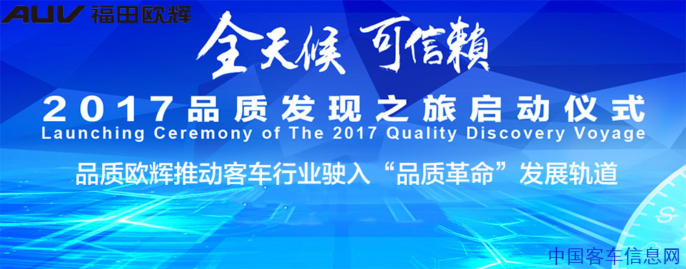 福田歐輝攜旗下5款明星產(chǎn)品亮相“2017品質(zhì)發(fā)現(xiàn)之旅”啟動(dòng)儀式現(xiàn)場,以安全、綠色、智能的特點(diǎn),以及涉足公路客運(yùn)、商務(wù)出行、校車、新能源等領(lǐng)域的完整譜系,展示了福田歐輝在多個(gè)應(yīng)用領(lǐng)域的市場積累與技術(shù)實(shí)力,彰顯其以“全天候 可信賴”的品質(zhì)客車標(biāo)準(zhǔn),切實(shí)助推中國客車行業(yè)向上升級、深化中國客車工業(yè)技術(shù)革新的決心.....【詳細(xì)】
