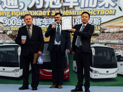 在世界杯期間,包括6月13日交付的最后一批車輛在內(nèi),總計有300多輛宇通客車在整個俄羅斯的城市群里,承擔著世界杯比賽期間運輸球迷及媒體記者的重要任務。