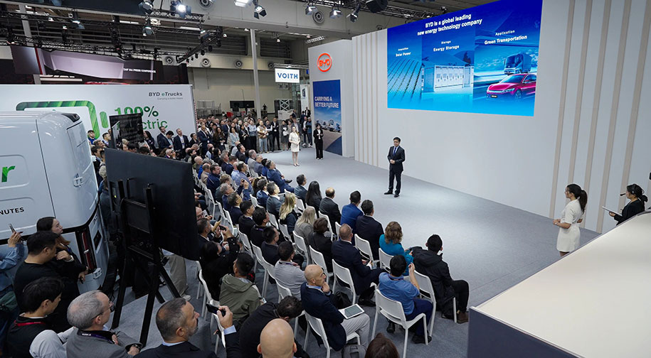 9月16日,2024年德國(guó)漢諾威國(guó)際交通運(yùn)輸博覽會(huì)(IAA Transportation 2024)正式開幕。比亞迪在展出純電動(dòng)卡車家族的同時(shí),首次亮相其純電動(dòng)輕型商用車E-VALI和純電動(dòng)堆場(chǎng)牽引車EYT 2.0。