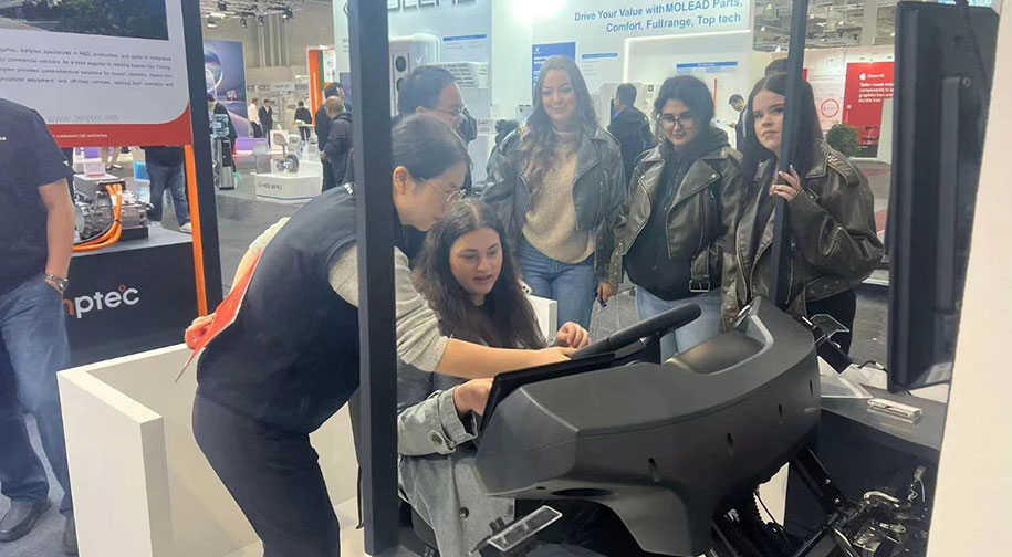 當(dāng)下,伴隨著商用車新能源化、數(shù)字化、智能化的全球推進(jìn),數(shù)智、綠色已成為行業(yè)趨勢(shì)。漢諾威展上,森鵬電子順勢(shì)而為,展示了多款數(shù)智化、綠色化產(chǎn)品,囊括數(shù)字駕駛艙、攪拌車電動(dòng)上裝系統(tǒng)、商用車低壓電控解決方案、智能交通系統(tǒng)、環(huán)衛(wèi)車?yán)Q重系統(tǒng)等六大商用車數(shù)智化解決方案。