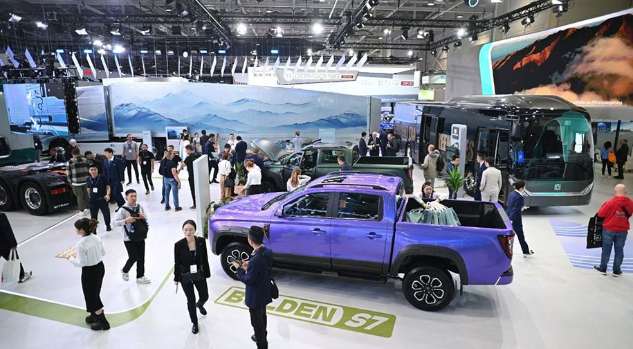 德國(guó)歷史最悠久的展會(huì)——德國(guó)漢諾威國(guó)際商用車博覽會(huì)于9月17日正式拉開序幕,吸引了全球汽車制造商、供應(yīng)商、行業(yè)專家和媒體匯聚一堂。東風(fēng)股份攜最新研發(fā)的綠色智能商用車型驚艷亮相,展示東風(fēng)加速轉(zhuǎn)型新能源,強(qiáng)勢(shì)競(jìng)逐新賽道的實(shí)力和風(fēng)貌。展會(huì)上,東風(fēng)E-STAR系列車型——V5、V7、V9及T型車,以卓越的性能、前沿的設(shè)計(jì)理念和綠色智能的技術(shù)應(yīng)用,吸引了全球目光,傳遞品牌對(duì)綠色出行的堅(jiān)定承諾。
