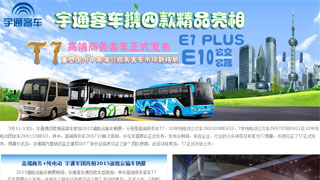 5月11-13日,宇通攜四款精品客車參加2015道路運(yùn)輸車輛展,分別是高端商務(wù)車T7、10米純電動公交車ZK6105BEVG3、7米純電動公交車ZK... 更多>>
