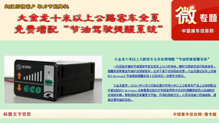 大金龍宣布,從2011年10月25日起在國(guó)內(nèi)市場(chǎng)10米以上公路客車產(chǎn)品上全線標(biāo)配業(yè)內(nèi)首創(chuàng)的ECO-driving,這裝置通過指示燈和語音兩種方式實(shí)時(shí)... 更多>>