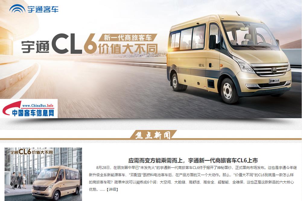 8月28日,在朋友圈中早已“未發(fā)先火”的宇通新一代商旅客車CL6終于揭開了神秘面紗,正式面向市場發(fā)布。這也是宇通今年繼新升級全系新能源客車、“雙配置... 更多>>