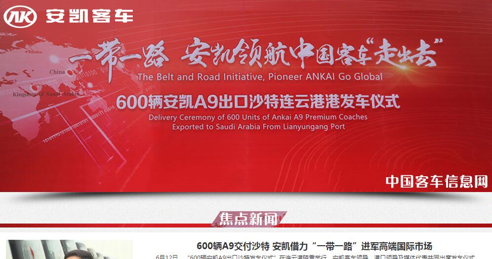 6月12日,“600輛安凱A9出口沙特發(fā)車儀式”在連云港隆重舉行,安凱客車領(lǐng)導(dǎo)、港口領(lǐng)導(dǎo)及媒體代表共同出席發(fā)車儀式,見證這一偉大時(shí)刻。該批訂單交付后... 更多>>