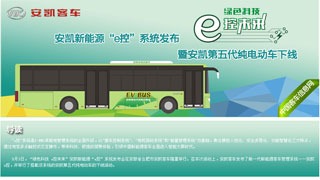 9月3日,“綠色科技 e控未來”安凱新能源“e控”系統(tǒng)發(fā)布會在安徽省合肥市安凱客車隆重舉行。在本次活動上,安凱客車發(fā)布了新一代新能源客車管理系統(tǒng)——... 更多>>